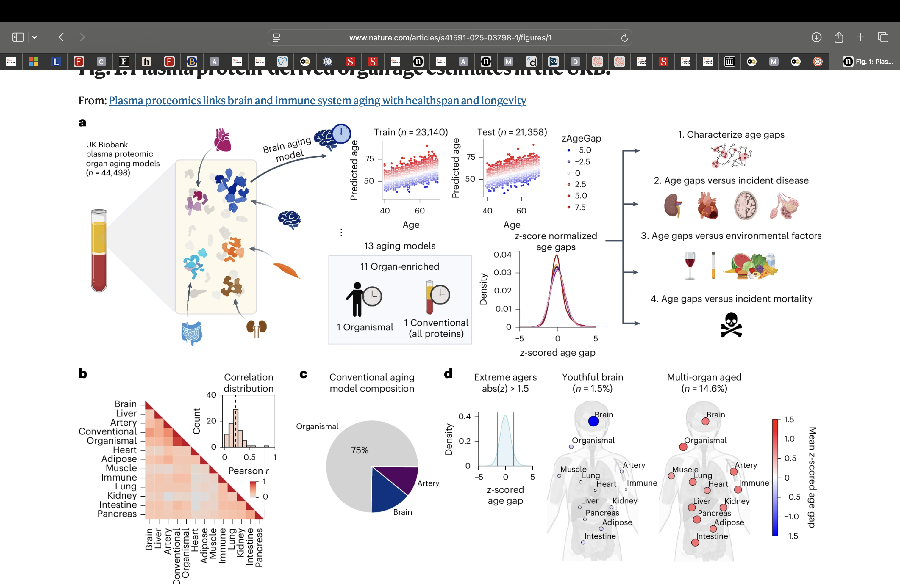 Yaklaşık 17 sene süren takiplerde organın yaşı ile gerçekleşecek hastalık oranlarına bakmışlar. Örnegin, Alzheimer hastalığı gerçekleşme oranının beyin yaşı yüksekliği ile 3 kat arttığını bulmuşlar. Önceden yapılan genetik calışmalarda risk faktorü olan APOE4 geni varlığının riski benzer arttırdığını not etmişler. Genç beyne sahip olanlarda da tam tersini görmüşler. Yaşlı organ sayısı arttıkça da ölüm riskinin katlanarak arttığını bulmuşlar. Kanda protein ölçerek organ yaşı , ileriye dönük hastalık ve ölüm riskinin ortaya konabileceğini, bu seviyeleri takip ederek de hastalık ve ölüm riskinin dinamik olarak tanımlayabileceğini öngörmüşler.