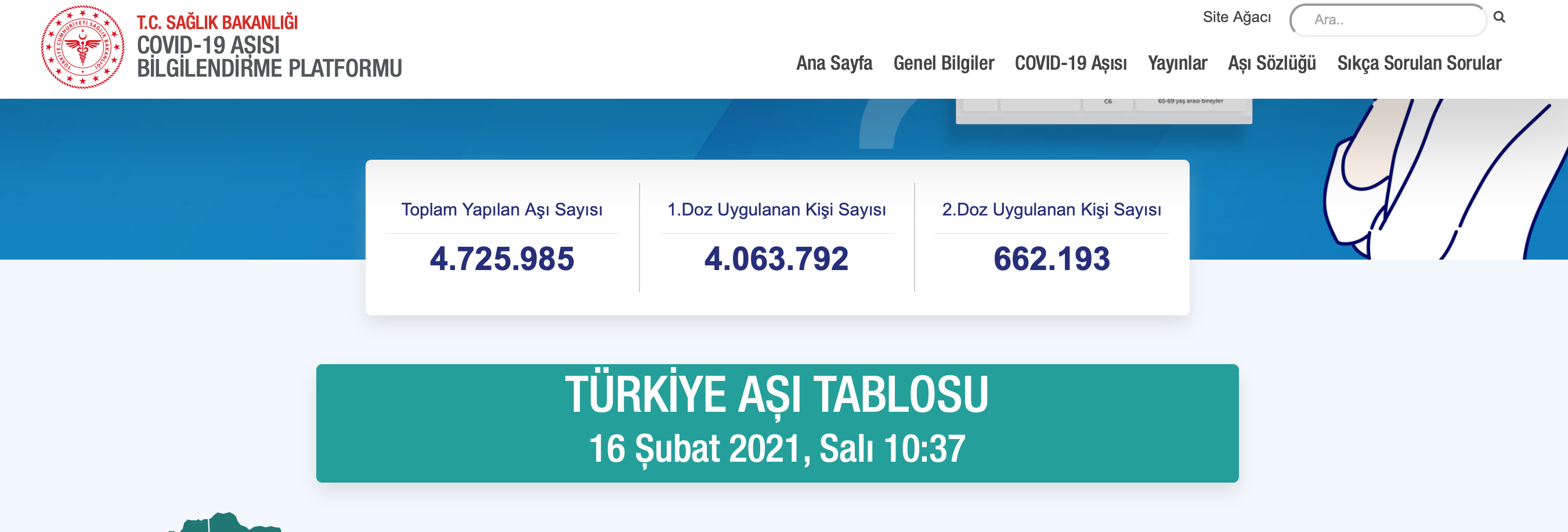Bugün yani 16 Şubat itibarıyla ülkemizde toplam yapılan aşı sayısı 4.7256.985’dir. 14 Ocak günü yani yaklaşık 35 gün önce başlanan aşılama programında şu an itibarıyla günlük ortalamamız 140.000 civarındadır. Bundan sonra bu rakamları günlük sizlerle paylaşacağım. Günlük artışları da not edeceğim.