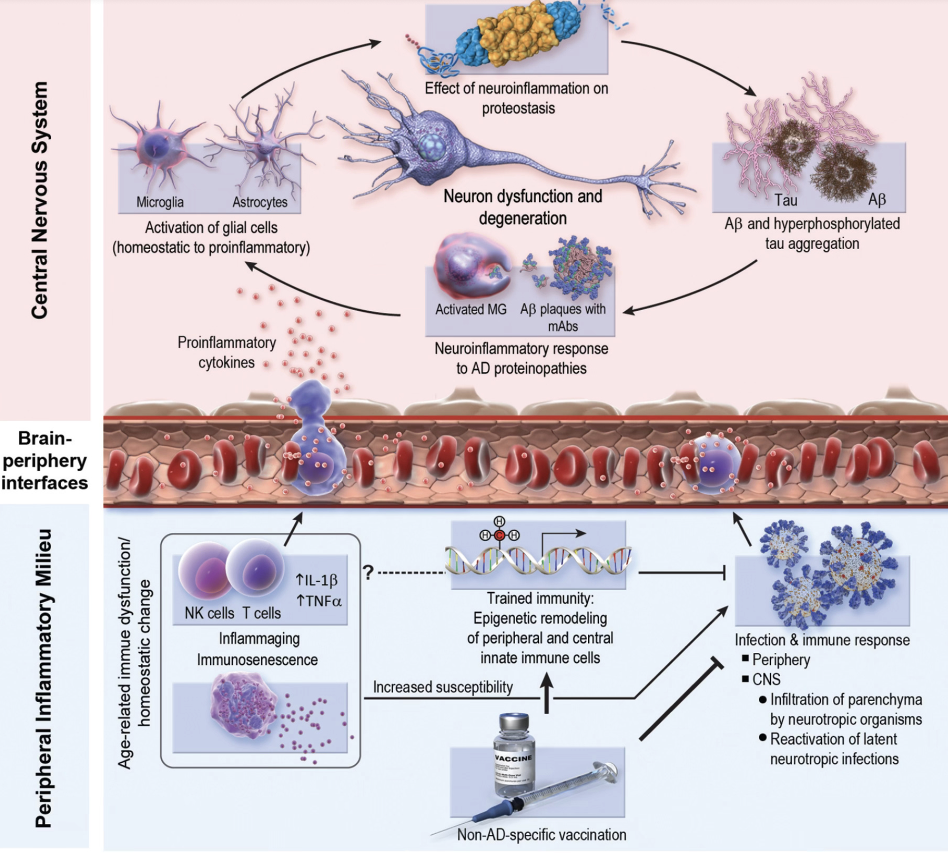 Alzheimer gelişiminde bazı tip virüslerin, özellikle zona hastalığı virüsünün (Varicella zoster) rolü olabilir. Bazı aşıların da önlemeye amaçlanan enfeksiyonlar dışında farklı bağışıklık sistemi etkileri de olabilir. Zona aşısının Alzheimer’dan koruması da böyle bir durum gibi duruyor.